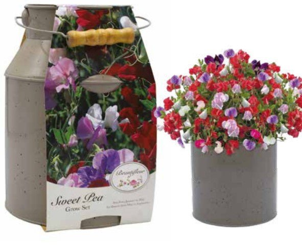 This delightful Milk Churn planter comes with compost and Sweet Pea Seeds – Little Sweetheart Mix
