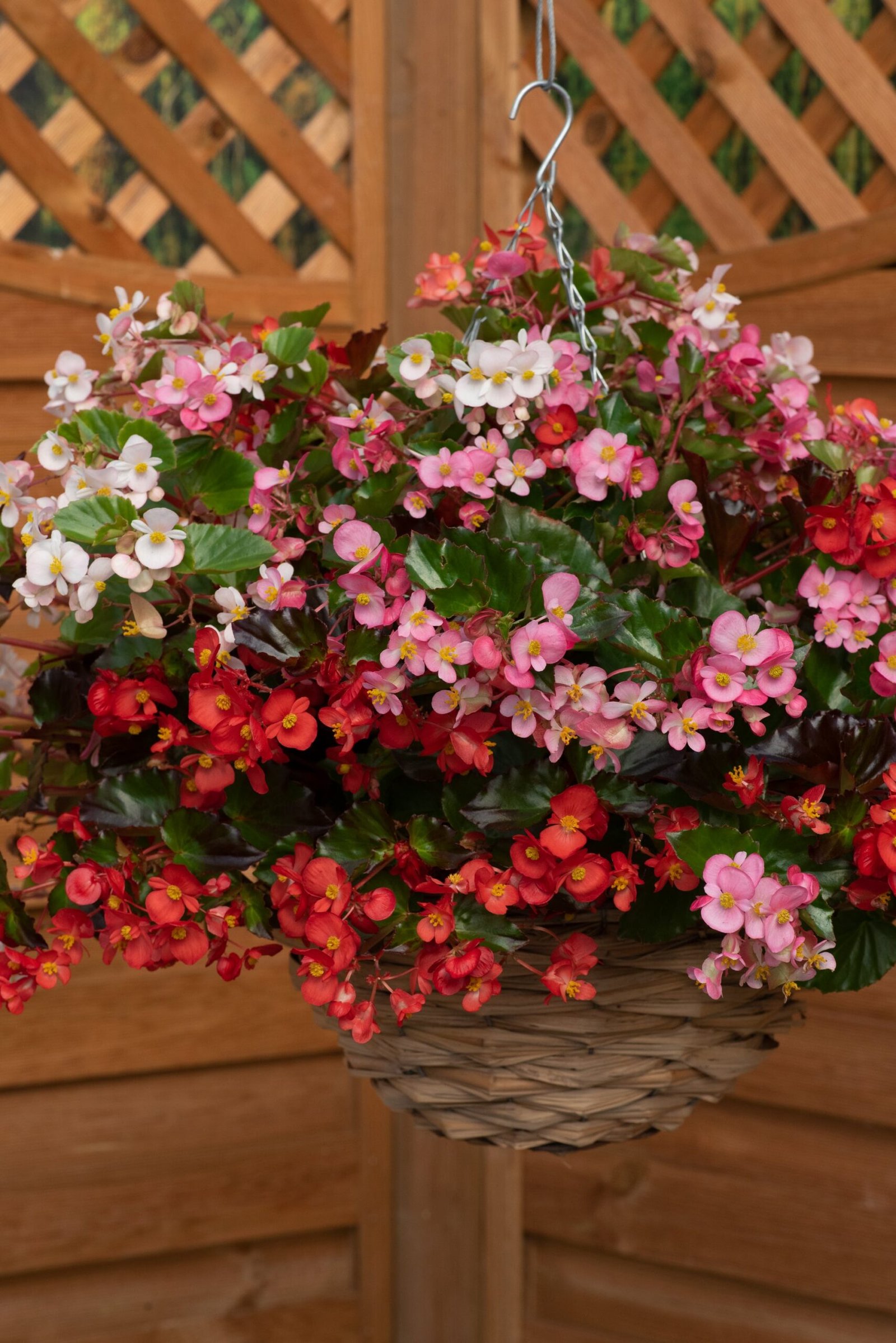 This is the first hanging basket type semperflorens Begonia with its trailing and spreading habit. The plants are vey branched which means there are lots of flowers. They can be grown in window boxes, patio pots, hanging baskets and even as a ground cover plant. This mix contains lots of shades including red, pink, purple and white flowers.