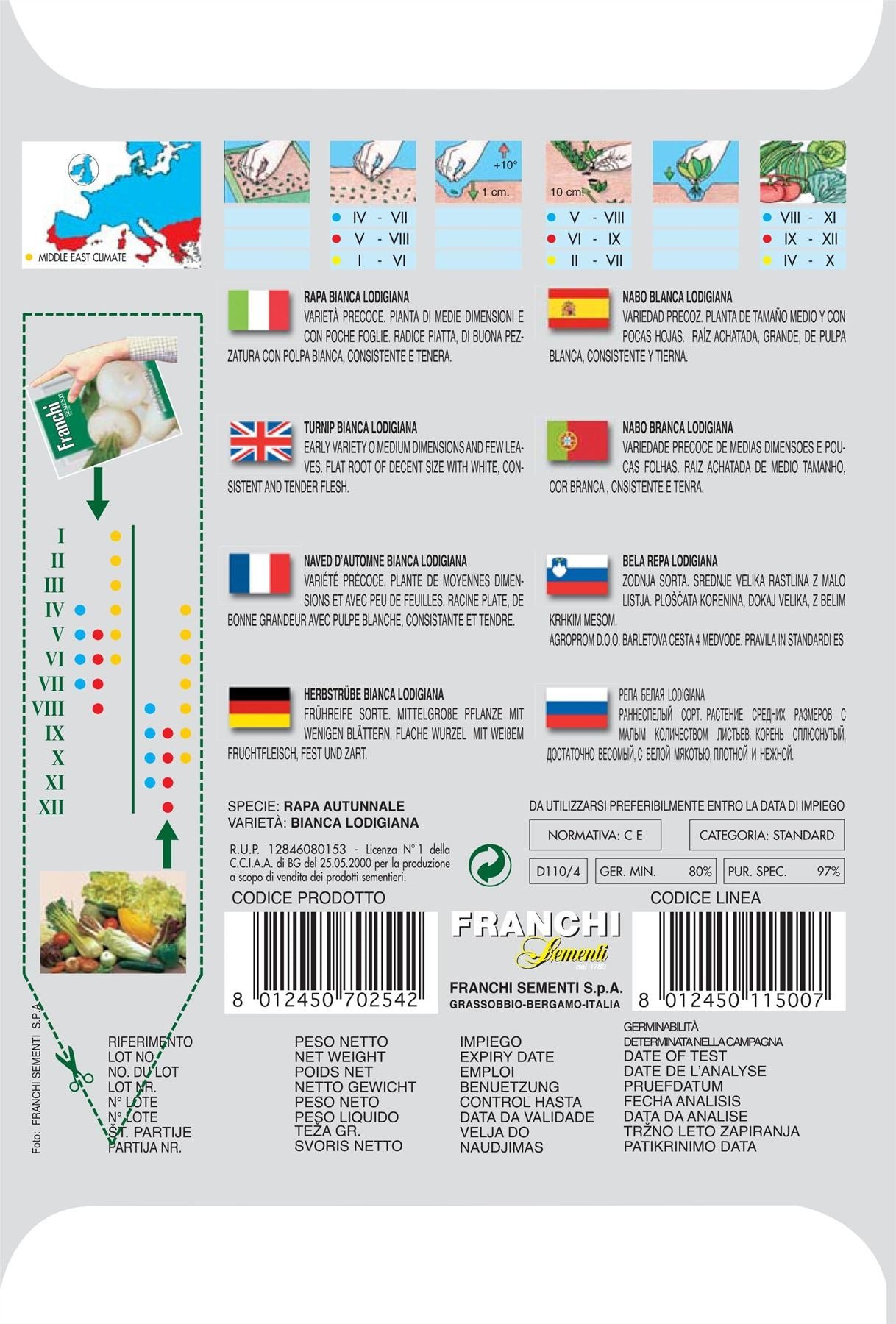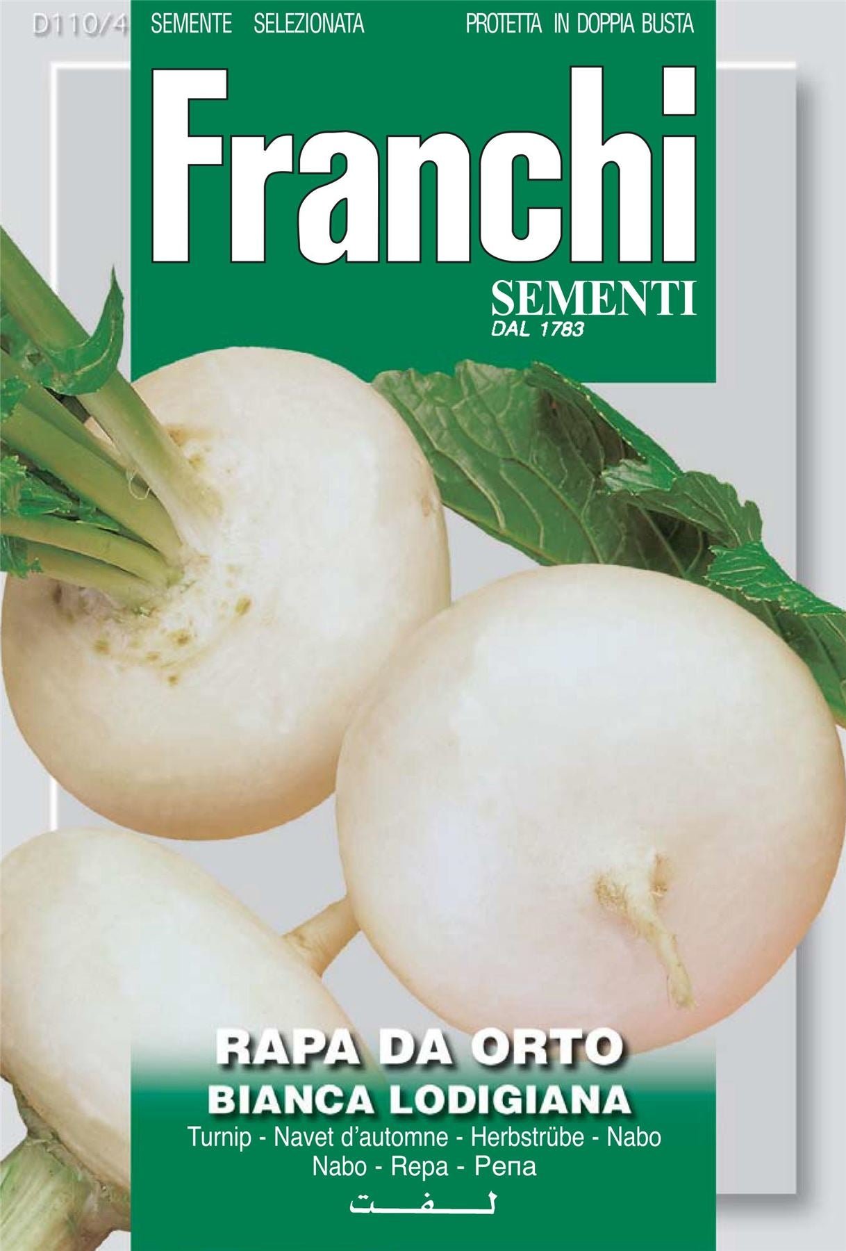 TURNIP BIANCA LODIGIANA � Early variety o medium dimensions and few leaves. Flat root of decent size with white, consistent and tender flesh.