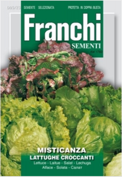 CRUNCHY LETTUCE MIX – a mix of lettuce leaves chosen for their crunchy texture. Cut-and-come-again. Stagger the sowing from spring to late summer for a constant supply.