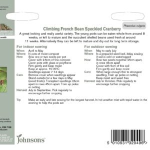 A great looking and really useful variety. The young pods can be eaten whole from around 8 weeks or left to mature and the succulent shelled beans used fresh at around 11 weeks. Alternatively, they can be left to mature and dry out for long term storage. Sow from April onwards. Full details on the packet.