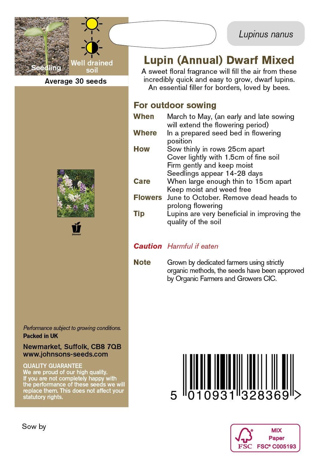 A sweet floral fragrance will fill the air from these incredibly quick and easy to grow dwarf lupins. An essential filer for borders loved by bees. Sow from March to May. Full details on the packets.