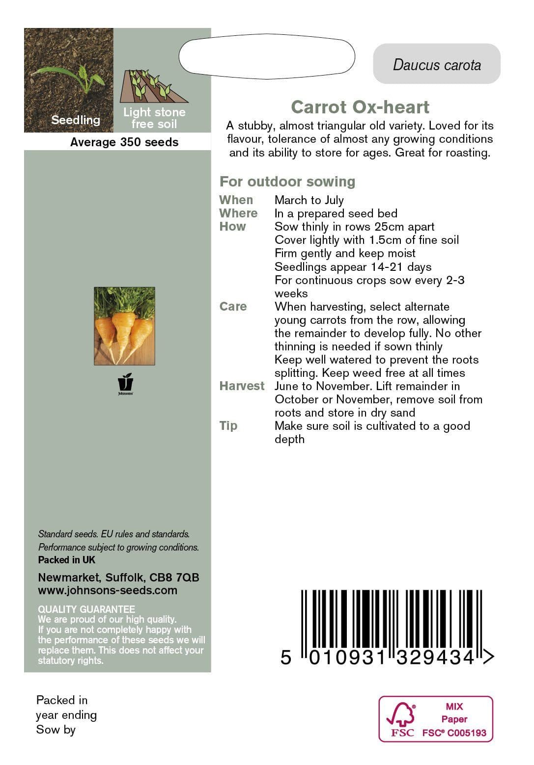 A stubby almost triangular old variety. Loved for its flavour, tolerance of almost any growing conditions and its ability to store for ages. Great for roasting. Sown from March to July. Full details on packet.