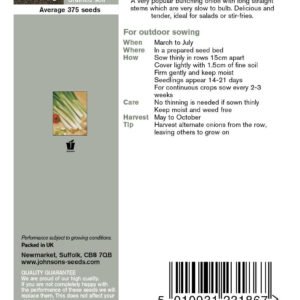 Popular and easy to grow bunching onion. The tasty stems remain succulent and tender over a long and rewarding harvest season.