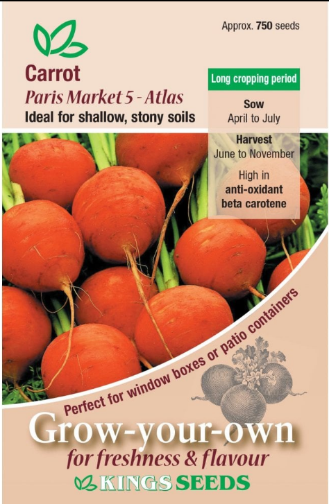 Kings Seeds Carrot Paris Market 5 Atlas 750 Seeds