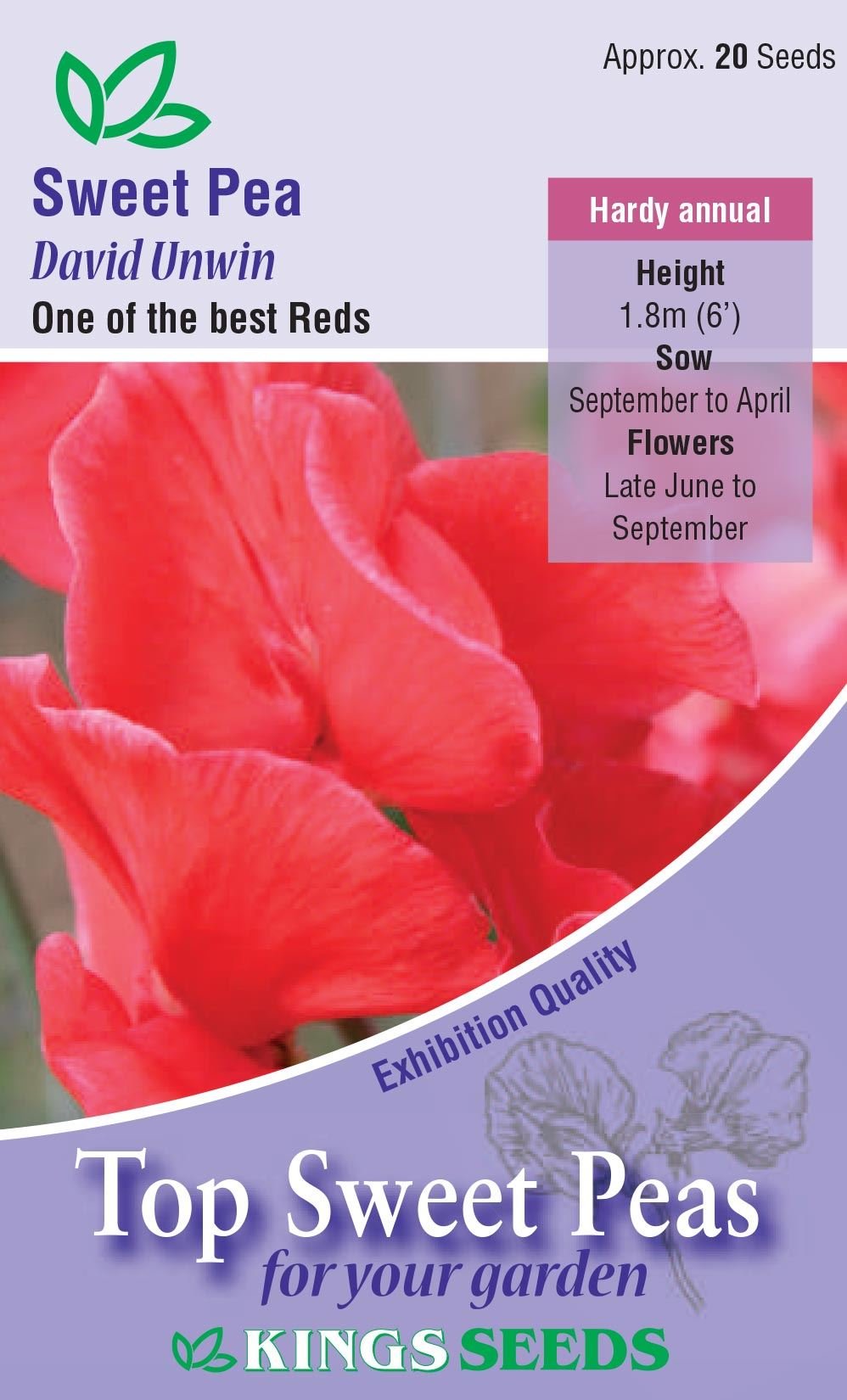 Kings Seeds Sweet Pea David Unwin 20 Seeds