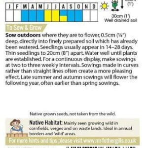 It can be sown where it is to flower. Easy and reliable, abundant in days gone by. Ideal for naturalising and in open spaces