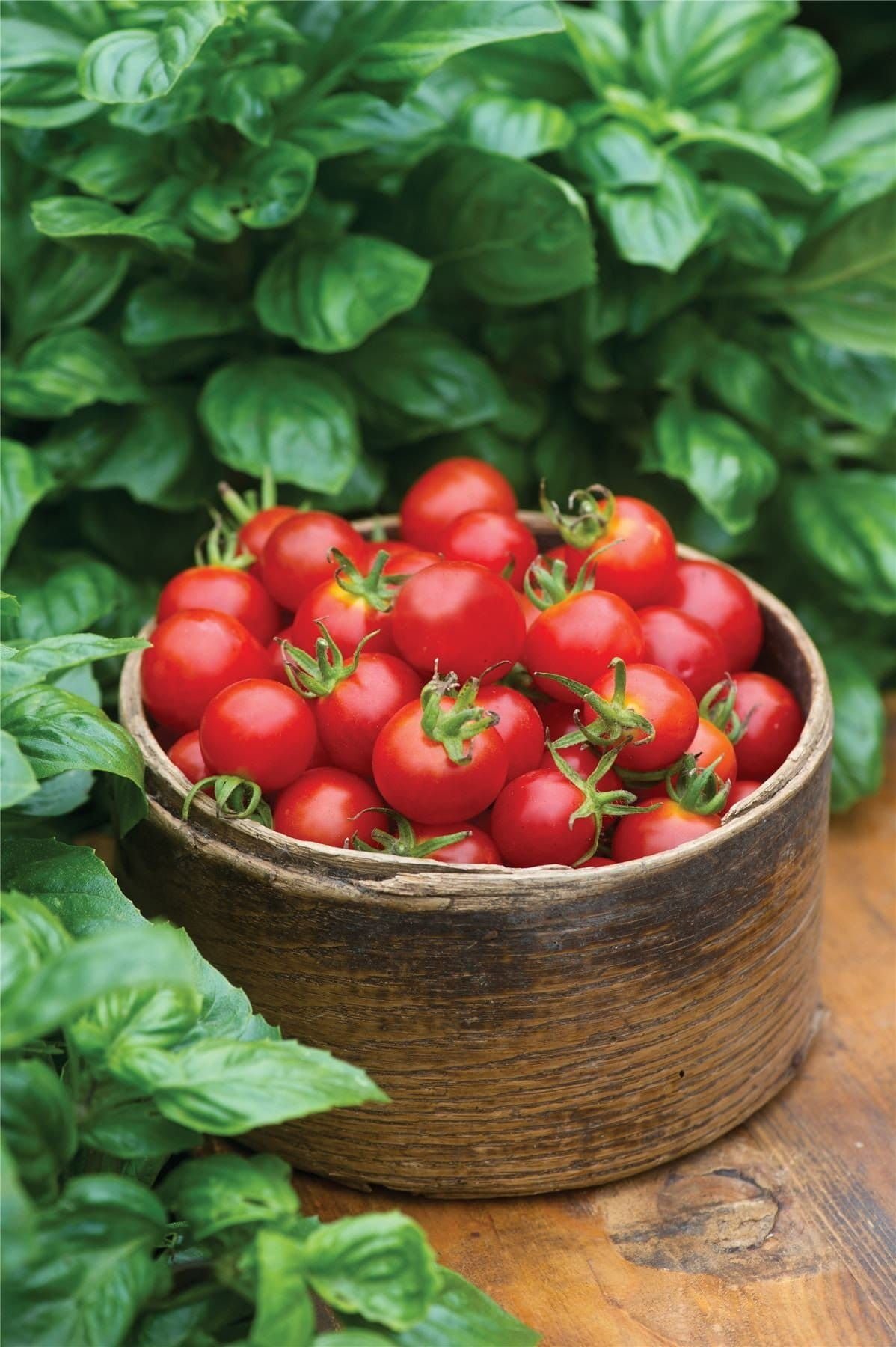 Tomato Baby Bloomer was introduced in 2013. It is an determinate variety ( Bush) which produces a very strong fast growing plant. IT grows well in containers or direct in the garden. It can produce up to 300 cherry tomatoes per plant.
