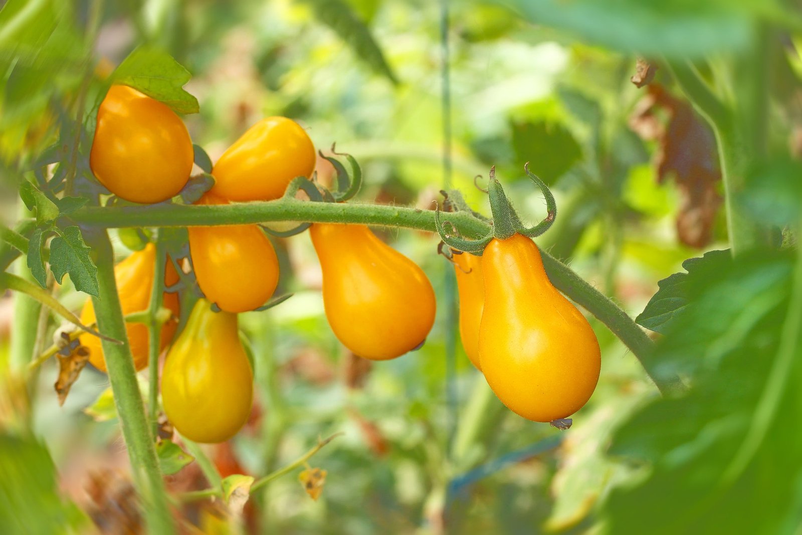 Peardrop is an F1 Hybrid Tomato that produces yellow fruits on a trailing plant. It has delightful pear-shaped fruits. It is a perfect plant for growing in baskets and containers. The sweet fruits have perfect acidity and balanced flavour. It is a determinate bush type tomato that does not need support. Do not remove side shoots.