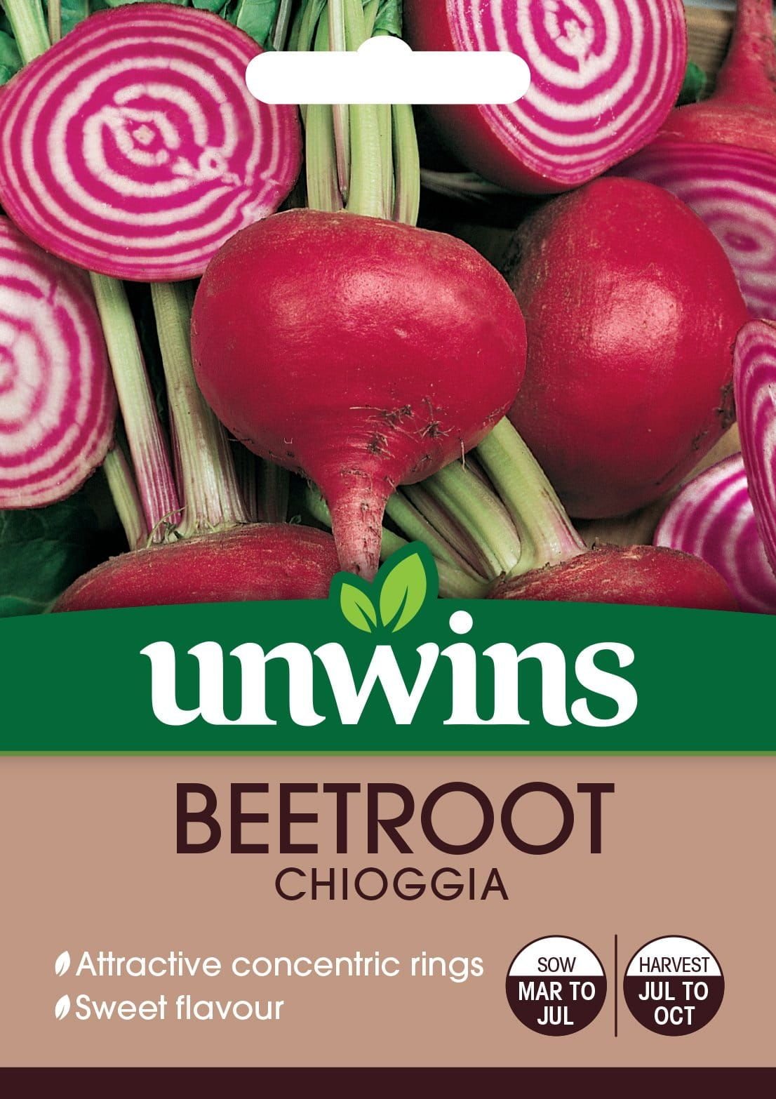 Beetroot variety with attractive concentric rings. Roots are sweet, tender and succulent, and the leaves, equally delicious.