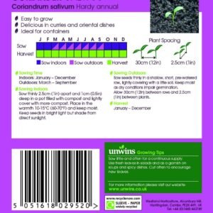 | This first cut and come again coriander, Calypso has a great flavour and is easy to grow. Grow it in beds and borders or in containers if space is limited. It is very slow to bolt, which ensures you have a great continuous supply of coriander for that curry or oriental dish over a long cropping period. |
