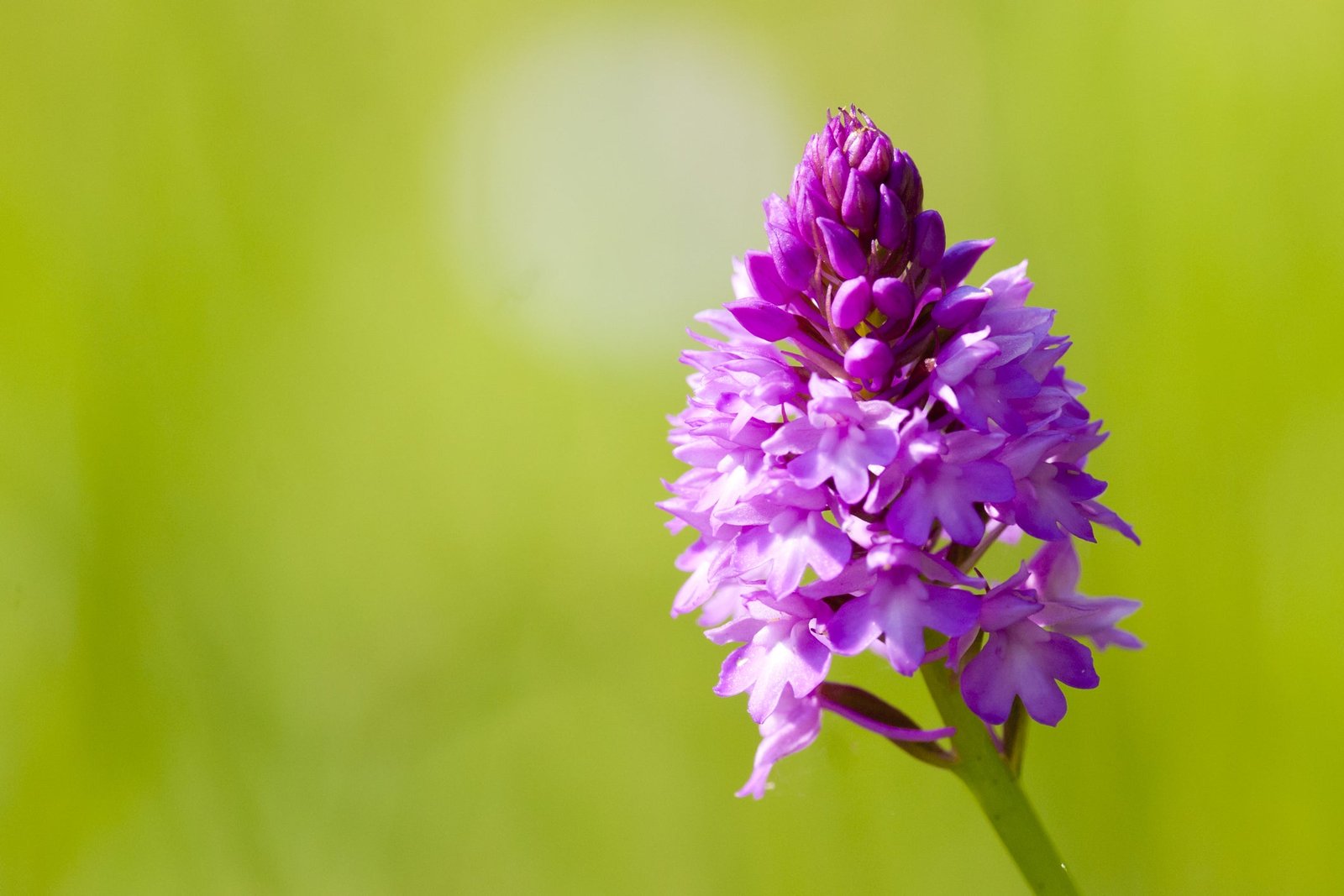 The Pyramidal orchid is a charming, small orchid that grows up to 25cm tall, featuring a dense, almost pyramidal cluster of deep pink or, less commonly, white blossoms. When the flowers are young, they emit a clove-like fragrance, which may evolve into a musky scent as they mature. The blooming period spans from June to early August.